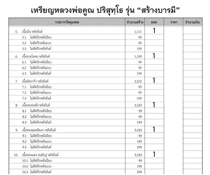 แบบเหรียญที่เป็นหลังยันต์ทั้งหมด มีดังนี้