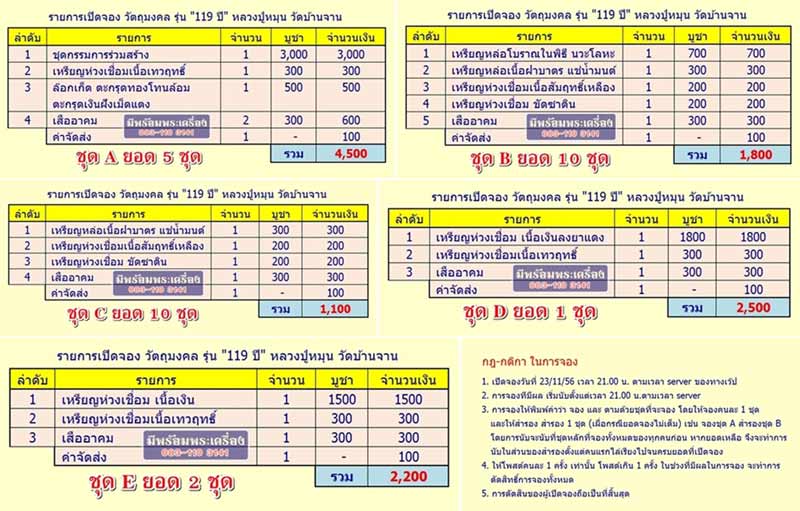 | หัวข้อกระทู้ : => กระทู้เปิดจอง วัตถุมงคล รุ่น 119 ปี หลวงปู่หมุน วัดบ้านจาน (ศูนย์มีพร้อมพระเครื่อง) |