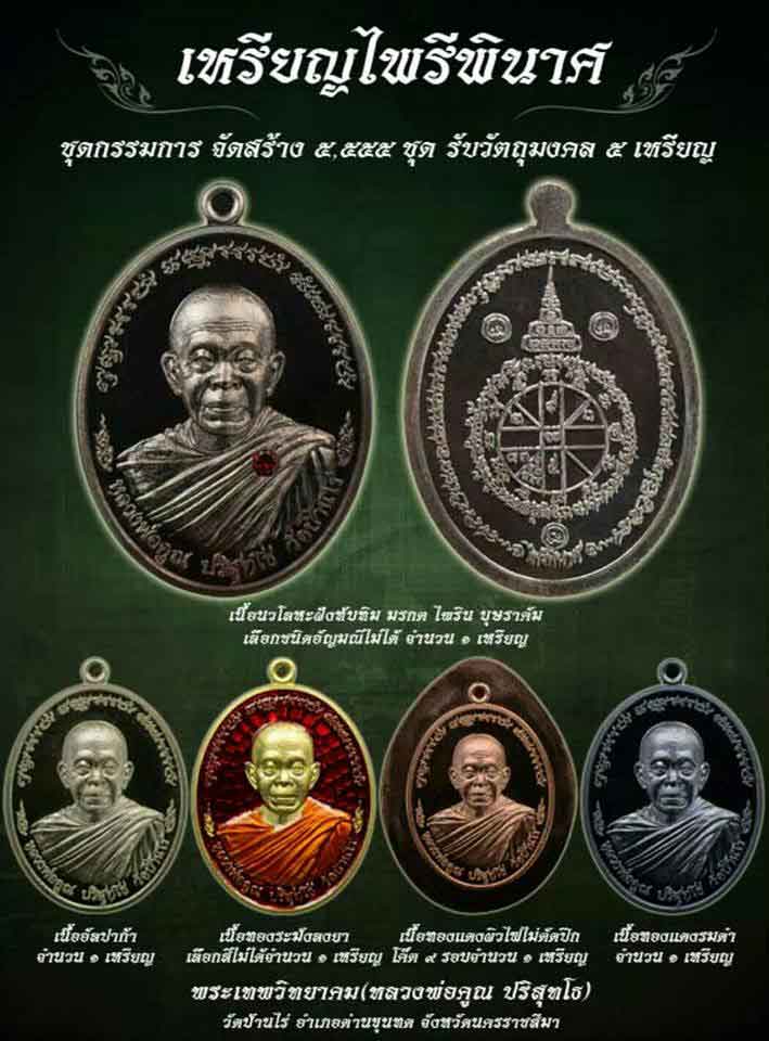 - เหรียญเนื้อเงิน 10 เหรียญ ๆ ละ 1,700 บาท