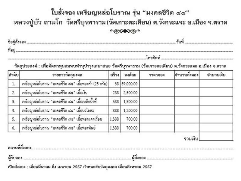 รายการที่ 10. เหรียญเจริญพร บน-ล่าง มี 2 ชุด ชุดละ 2,500 บาท