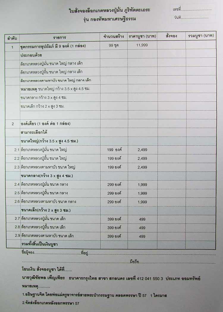 - ผู้ที่สนใจสามารถโพสต์จองบูชาได้ ได้โดยระบุรายการจอง และ เบอร์โทรติดต่อเอาไว้นะครับ