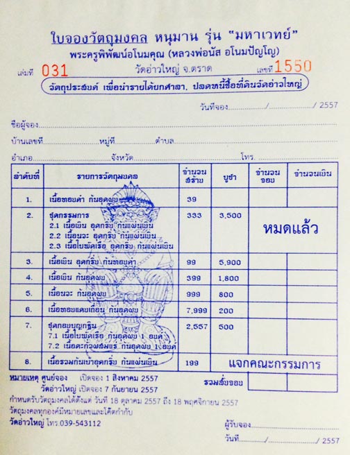 ราคาทำบุญ องค์ละ 5,900 บาท ...บวกค่าจัดส่ง 100 บาท... ยอดโอน 6,000 บาท