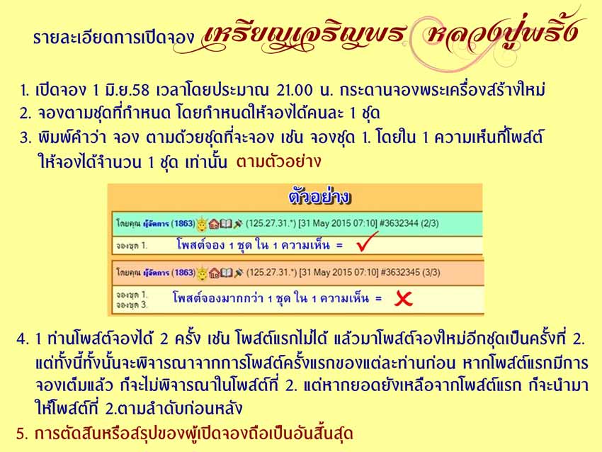 ขอให้โชคดีครับ จองได้เรื่อยๆ จนกว่ายอดจะเต็มครับ โดยผลการจองจะสรุปให้ทราบต่อไปหลังจากการจองครับ