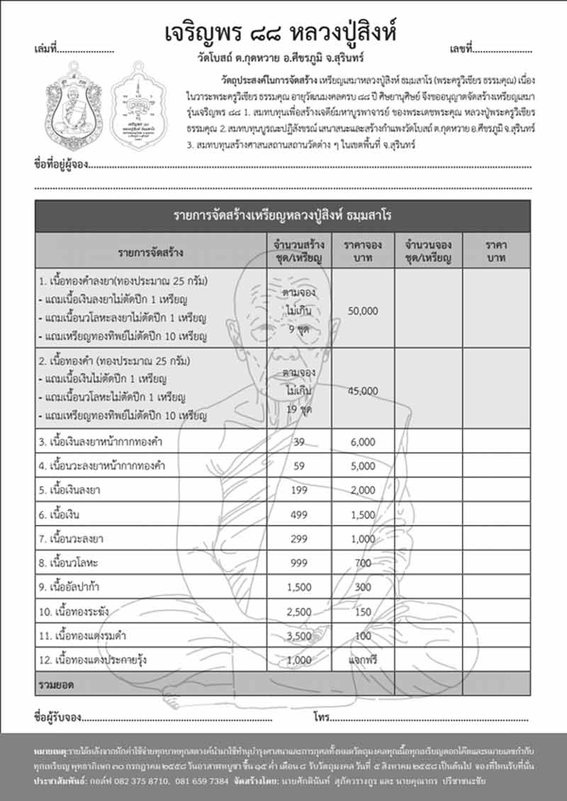 [[[เปิดจอง]]]เจริญพร 88 หลวงปู่สิงห์ ธัมมะสาโร จังหวัดสุรินทร์...ขออภัยรูปอาจจะไม่ชัดแต่เหรียญจริงคมชัดมากครับ