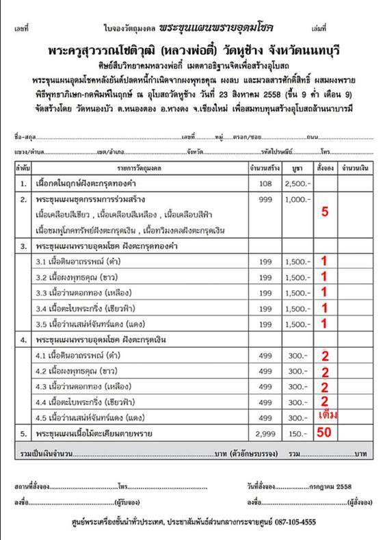 ยืนยันยอดจอง คุณ ksanti รายการที่ 5 ราคา 150 *25 องค์=3750 +ค่าจัดส่ง 100