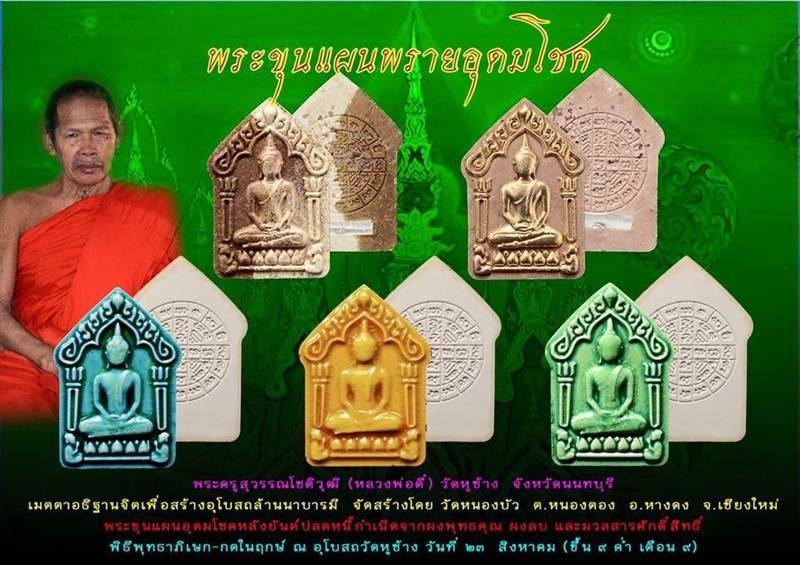 พระขุนแผนอุดมโชคหลังยันต์ปลดหนี้กำเนิดจากผงพุทธคุณ ผงลบ และมวลสารศักดิ์สิทธิ์ ผสมผงพราย พิธีพุทธาภิเษก-กดพิมพ์ในฤกษ์ ณ.อุโบสถวัดหูช้าง วันที่ 23 ส.ค.58 (ขึ้น 9 ค่ำ เดือน 9)