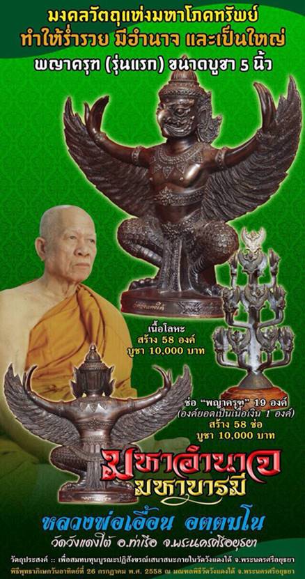 เปิดจองวัตถุมงคล พญาครุฑ ทรงฤทธิ์ (รุ่นแรก) มหาอำนาจ มหาบารมี หลวงพ่อเอื้อน วัดวังแดงใต้ จ.พระนครศรีอยุธยา