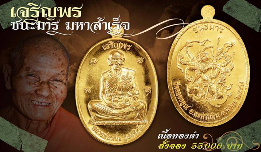 2.เหรียญเจริญพร เนื้อทองคำ บูชา 55000 บาท โทรจอง
