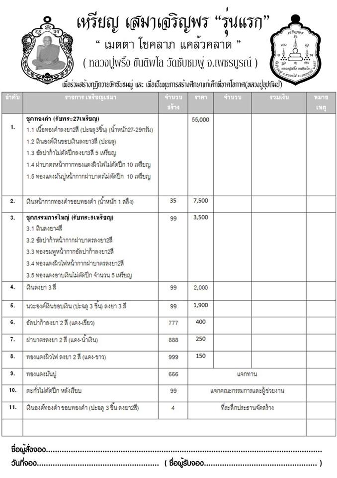 เปิดจองเหรียญเสมา เจริญพร รุ่นแรก ดังนี้ครับ