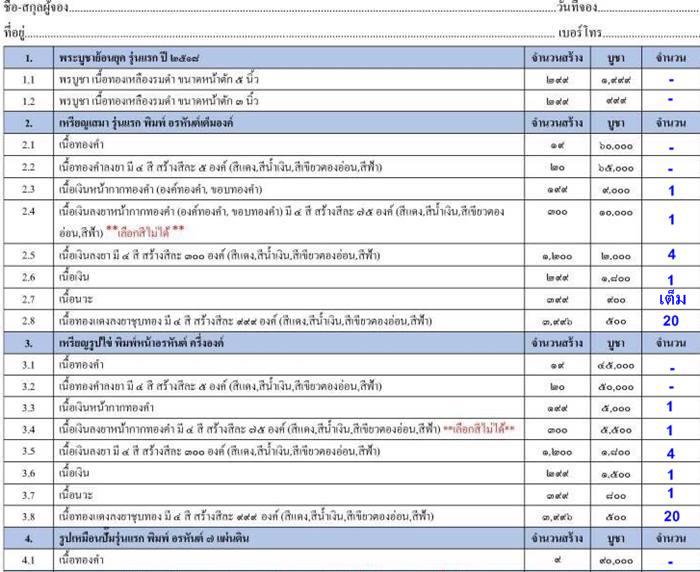 เปิดให้จองตามรายการราคาวัดค่ะ