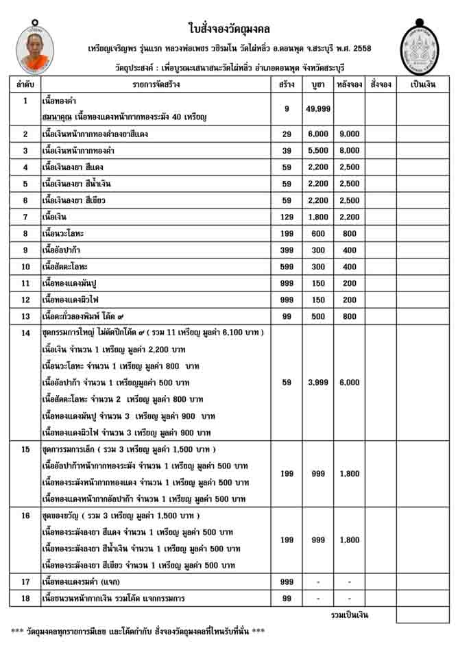 *** ราคาจองทุกรายการ + ค่าจัดส่ง 100/ท่าน ***