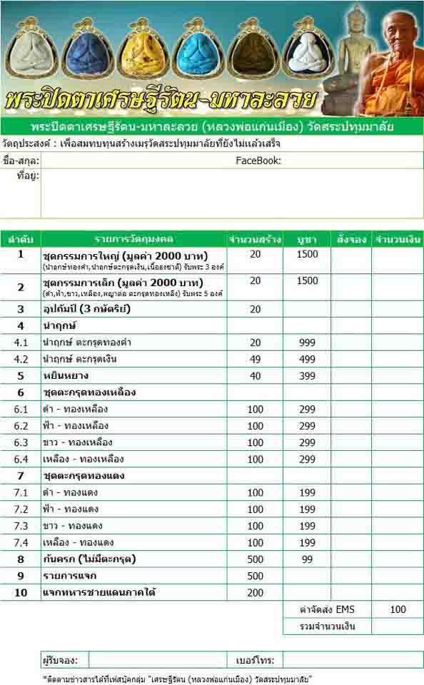 *** ราคาจองทุกรายการ+ค่าจัดส่ง 100/ท่าน ***