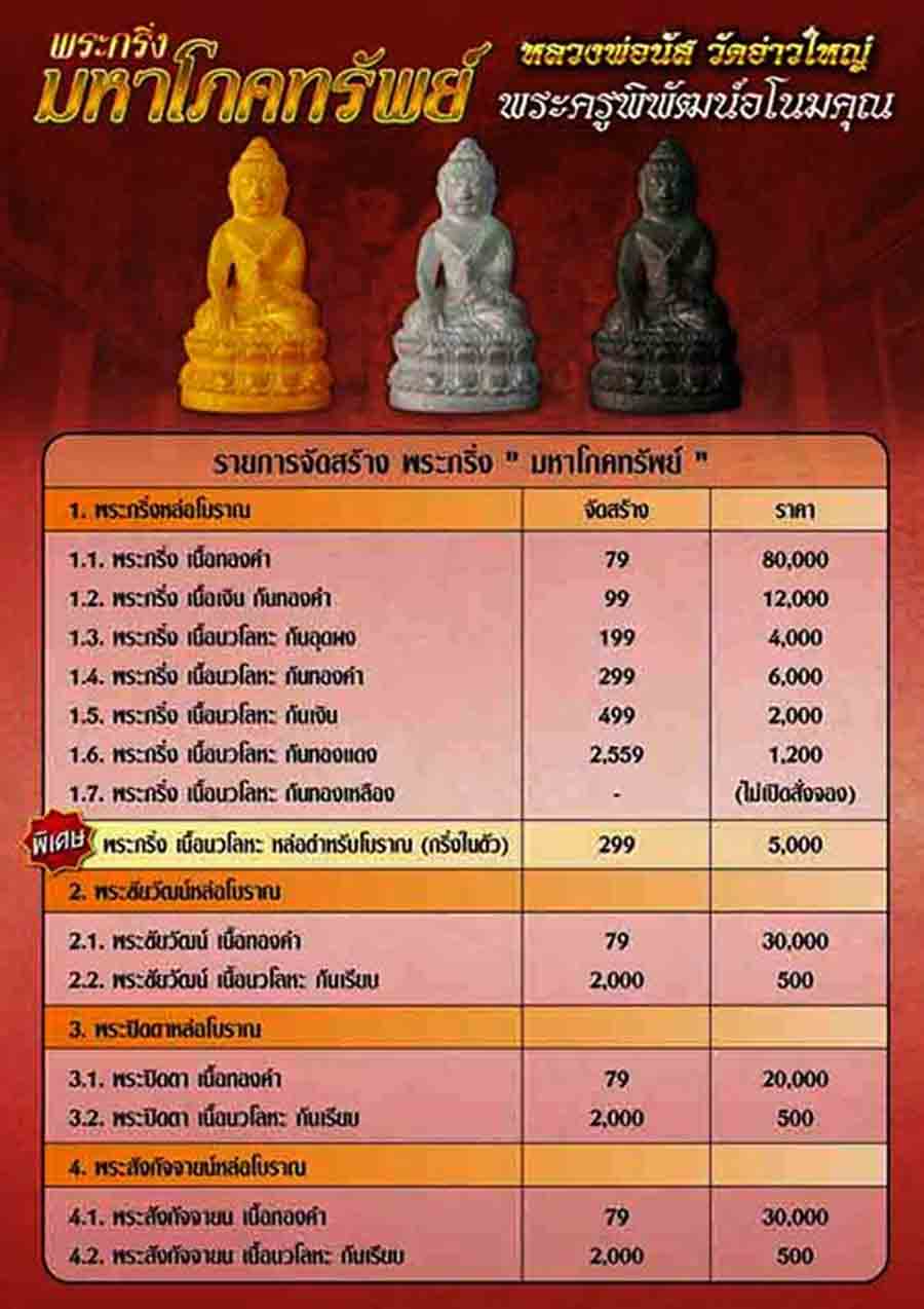 1.4 พระกริ่ง เนื้อนวโลหะ ก้นทองคำ มียอดจอง 1 องค์ ราคา 15,000 บาท