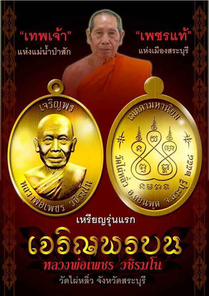 เปิดจองเหรียญเจริญพร รุ่นแรก หลวงพ่อเพชร วชิรมโน วัดไผ่หลิว จ.สระบุรี