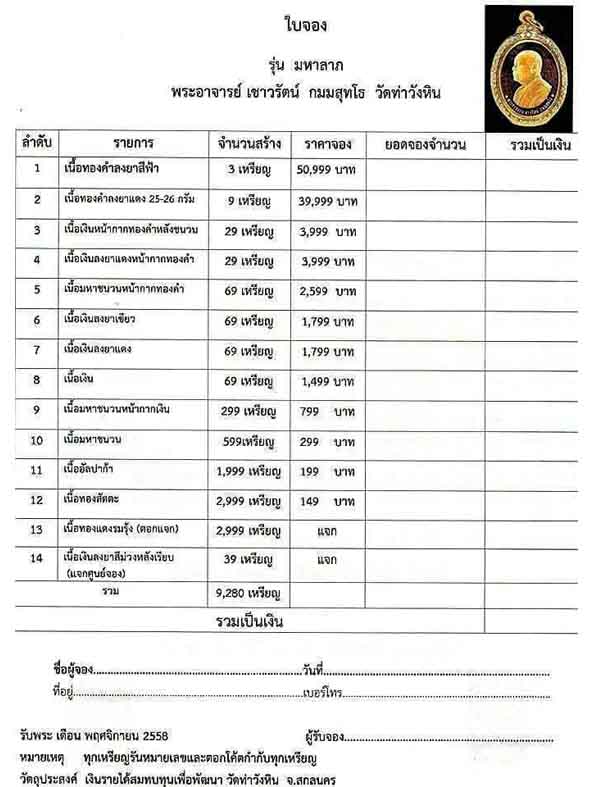 *** ราคาจอง+ ค่าจัดส่ง 100/ท่าน ***
