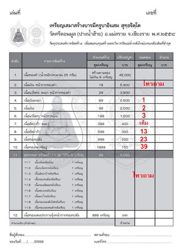 รับวัตถุมงคลเดือนพฤศจิกายน 58