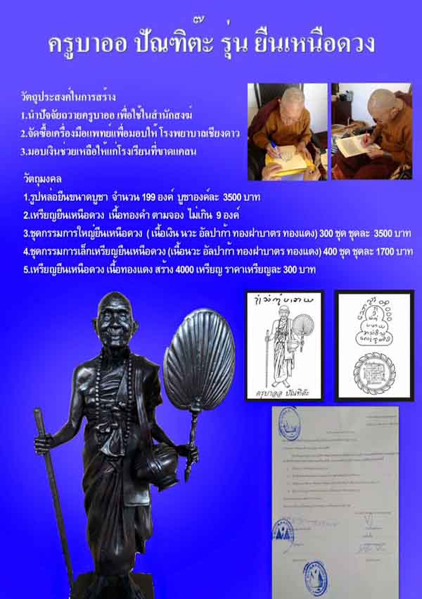 รูปหล่อยืน สูง 12 นิ้ว ไม่รวมความสูงฐานครับ สร้าง 199 องค์ เท่านั้น มียอด 7 องค์ องค์ละ 3500 บาท มีค่าจัดส่ง 150 บาทครับ พระออกวันที่ 28 กันยายน 2558.