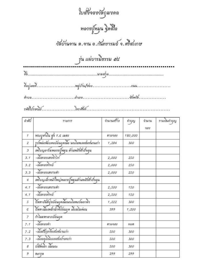 หมายเหตุ : วัตถุมงคลมีโค๊ดและ/หรือหมายเลขกำกับทุกรายการ