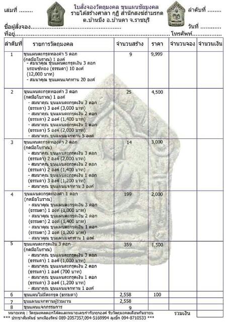 เปิดจอง ขุนแผนชัยมงคล สร้างศาลา กุฏิสงฆ์ สำนักสงฆ์ถ้ำมรกต ราคาจอง ตามรายการ ดังนี้