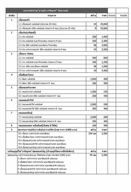 9. ชุดกรรมการ อุปถัมภ์ หลังยันต์ รวมโค๊ต สร้าง 200 ชุด มี 1 ชุดๆละ 3,000 บาท