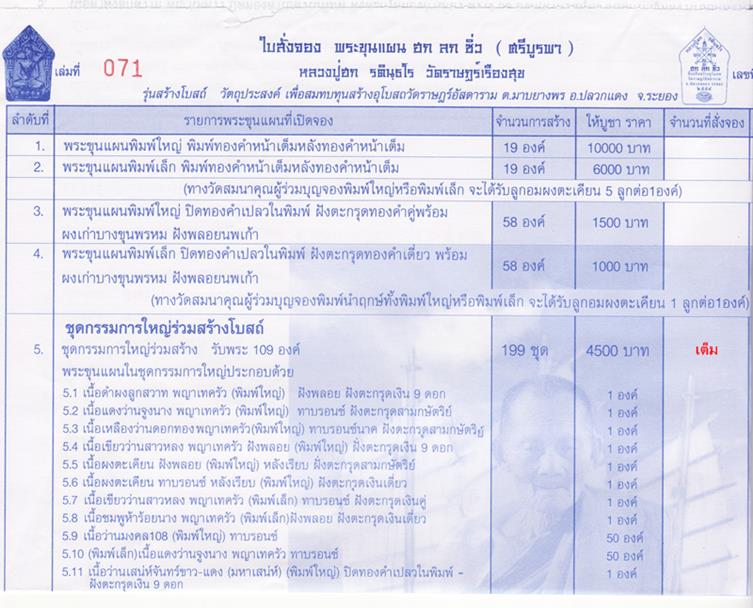 ชุดกรรมการใหญ่ร่วมสร้างโบสถ์ บูชา 4500 บาท รับพระ 109 องค์ / โทรถาม