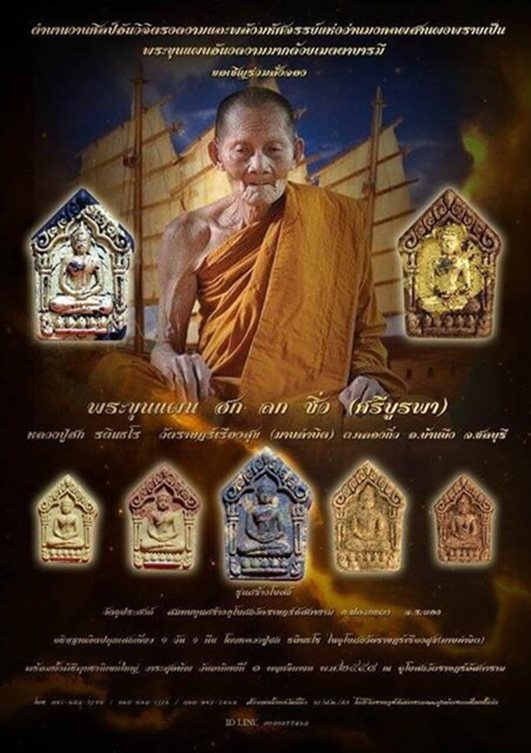 พระขุนแผน ฮก ลก ซิ่ว (ศรีบูรพา) หลวงปู่ฮก วัดราษฎร์เรืองสุข รุ่นสร้างโบสถ์ วัตถุประสงค์ เพื่อสมทบทุนสร้างอุโบสถวัดราษฎร์อัสดาราม อ.ปลวกแดง จ.ระยอง