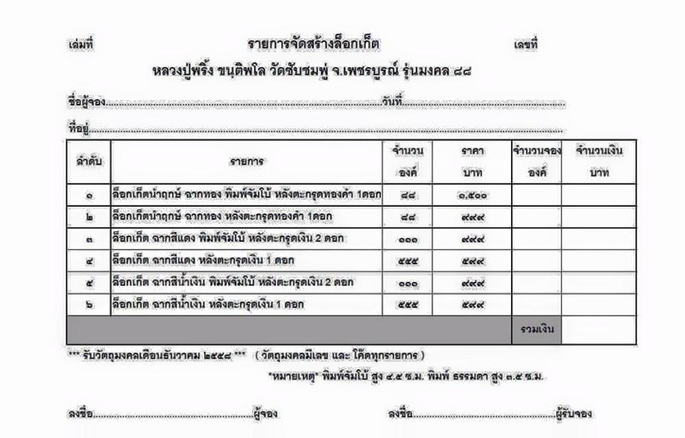 รายการที่ 5 ฉากสีน้ำเงิน พิมพ์จัมโบ้ หลังตระกรุดเงิน 2 ดอก มียอด 1 องค์ๆละ 999 บาท