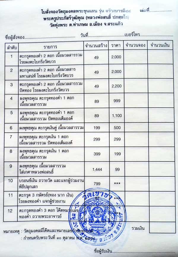 โอนภายใน 1 วัน ขอบคุณครับ ( กำหนดวันพระออก 10 ตุลาคม 2558 โดยประมาณ )