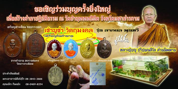 รายได้ทั้งหมดร่วมสร้างศาลาปฎิบัติธรรม วัดป่าบุพพนิมิต บ้านหนองหิน ต.โคกกอ อ.เมือง จ.มหาสารคาม