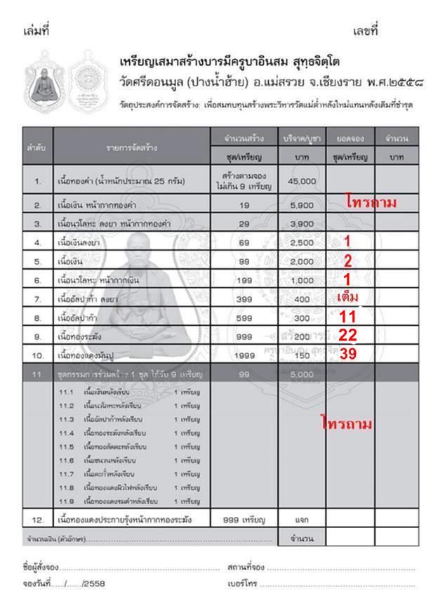 รับวัตถุมงคลเดือนพฤศจิกายน 58