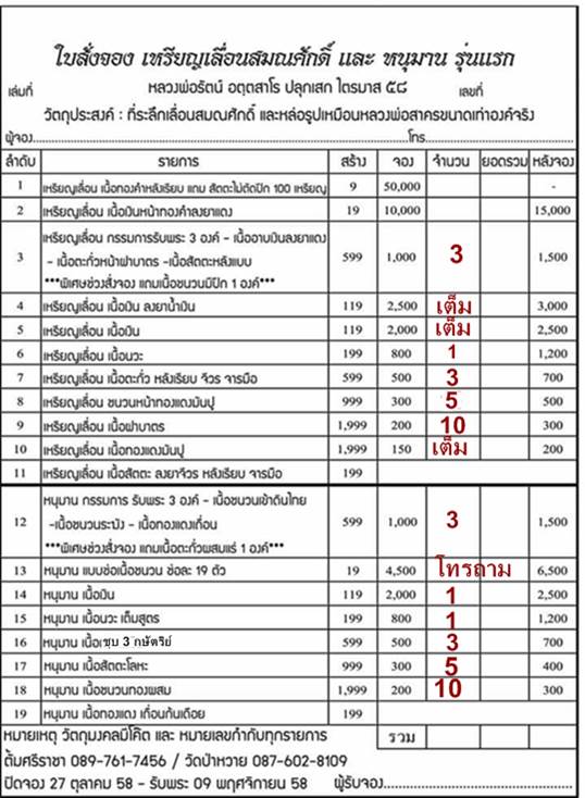 รายการ 16 หนุมานชุบ 3 กษัตริย์ 500x3องค์ = 1500