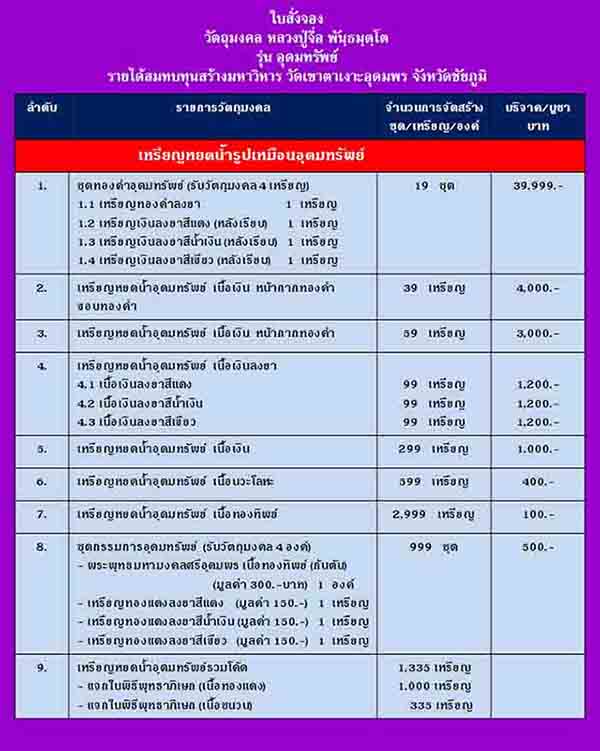 รายการที่ 8 ชุดกรรมการอุดมทรัพย์รับพระ4องค์ชุดละ 500 บาทมี 7 ชุด