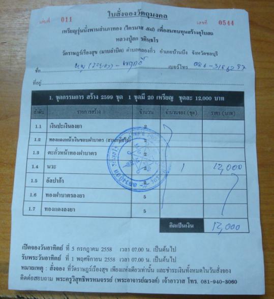 รายการที่ 1.1 เนื้อเงินปะเงินลงยา มียอด 1 องค์ๆ 5200 บาท