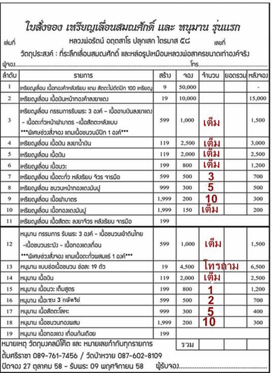 เปิดจองตามรายการราคาวัดค่ะ