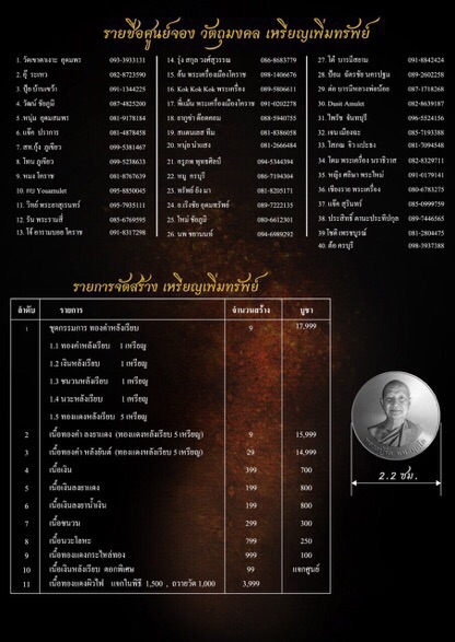 ขอเชิญ ร่วมสั่งจอง เหรียญหลวงปู่จื่อ พันธมุตโต รุ่น เพิ่มทรัพย์ วัตถุประสงค์ ในการจัดสร้าง เพื่อจัดหาทุน เพื่อ สมทบ ซ่อมแซมอาคารเรียน ของโรงเรียน วัดเนินยาง ต.คมบาง อ.เมือง จ.จันทบุรี การจัดสร้างครั้งนี้ พี่น้องสายจันทบุรีร่วมกันทำเต็มความสามารถ ด้วยใจมุ่งมั่นที่จะให้เด็กๆที่ยากจนได้มีสถานที่ศึกษาเล่าเรียน ได้อย่างปลอดภัย เนื่องจากอาคารเดิมเป็นไม้ที่ถูกปลวกกินจนเกือบหมดทั้งหลัง บางห้องถึงกับต้องปิดไว้เพื่อความปลอดภัยของเด็กๆ เราจึงตั้งใจที่จะทำให้งานนี้สำเร็จลงให้ได้