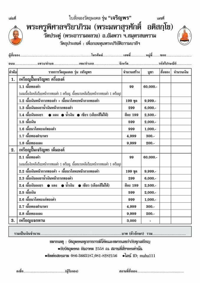 เหรียญเจริญพร(เต็มองค์) เนื้อทองแดง มียอด 20 เหรียญๆละ 250 บาท