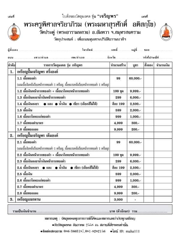 1. รายการ2.2 เหรียญปั๊มเจริญพรเต็มองค์ เงินหน้ากากทอง+นวะหน้ากากทอง 11,200 บาท มีชุดเดียว