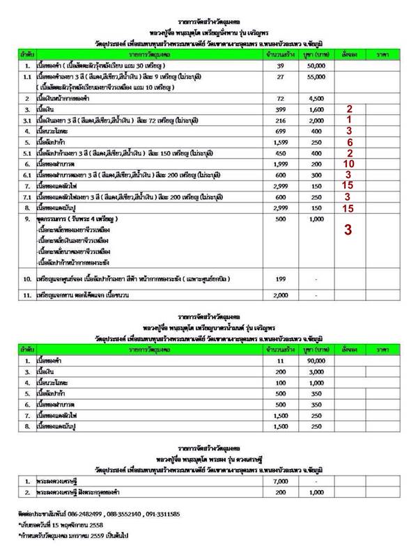 เปิดให้จองราคาวัด ตามรายการค่ะ