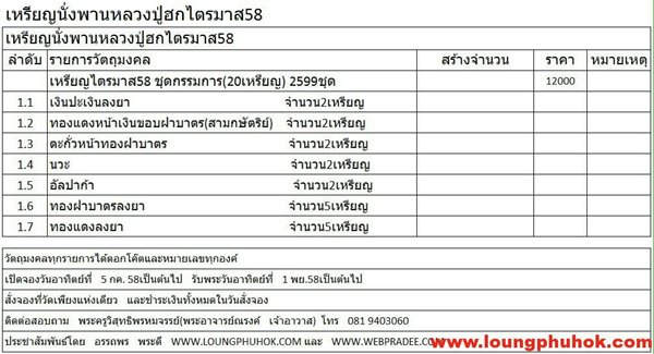 มียอดเหรียญนั่งพานสำเภาทอง(ไตรมาส ๕๘) หลวงปู่ฮก รตินธโร วัดราษฏร์เรืองสุข (มาบบิด)