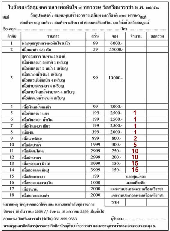 ปิดจอง 19 ธ.ค.58 รับวัตถุมงคล 19 ม.ค.59