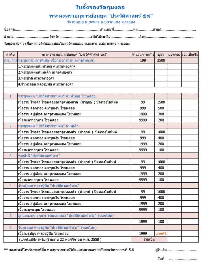 หัวข้อกระทู้ : เปิดรับจองพระผงพรายกุมารย้อนยุค ประวัติศาสตร์ ๕๘