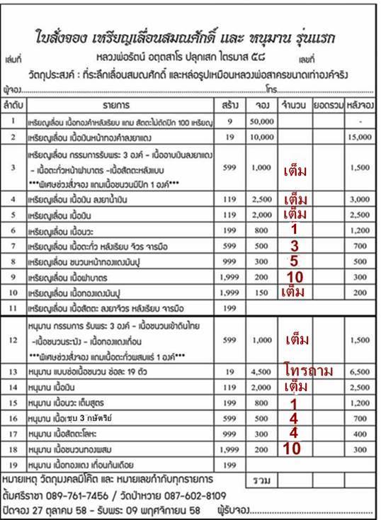 ปิดรายการที่6. เหรียญเลื่อน เนื้อนวะ จำนวน 1 เหรียญๆละ 800 บ.+ ค่าจัดส่ง 100 บ. รวมยอด = 900 บ. โอนเงินแล้วจะแจ้งให้ทราบในกระทู้อีกครั้งครับ ขอบคุณครับ