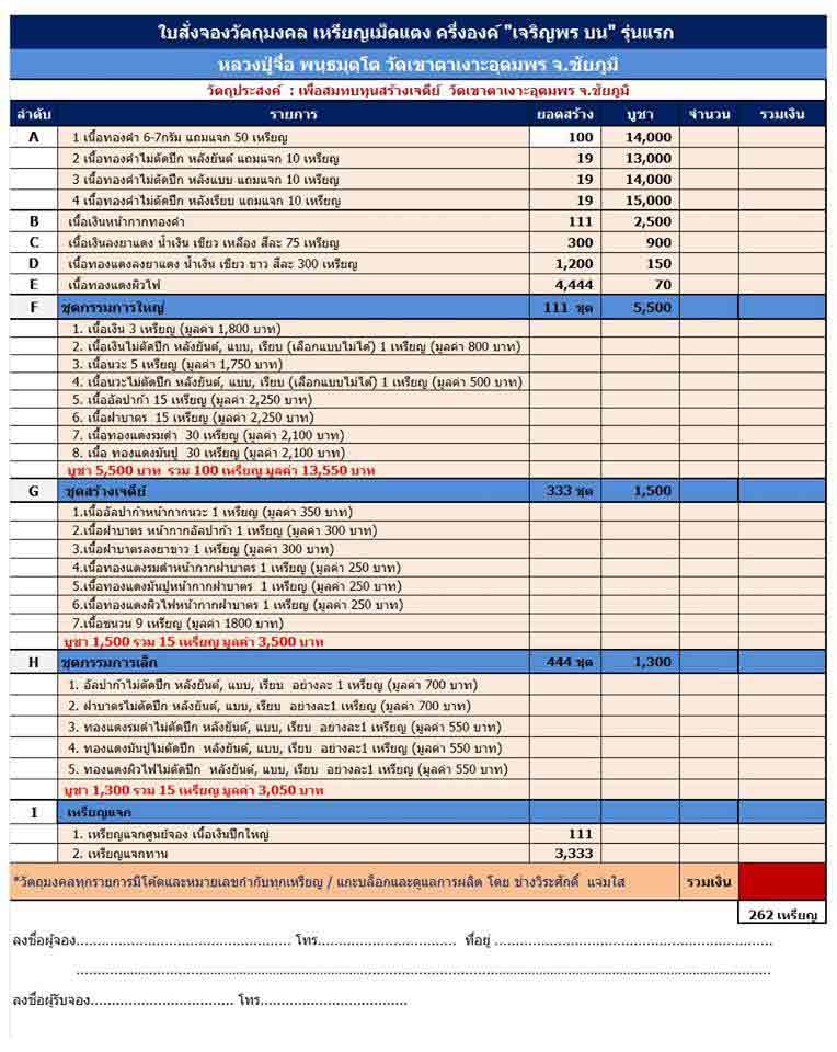 G. ชุดสร้างเจดีย์ ชุดละ 1,500 บาท มียอด 3 ชุด