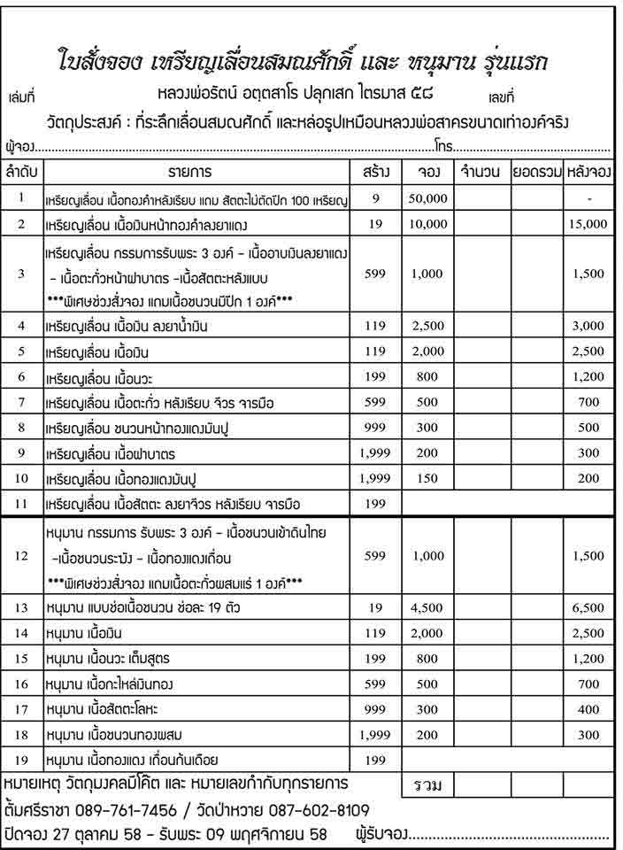 16.หนุมาน เนื้อชนวนทองผสม จอง 200 บาท มียอด 8 องค์