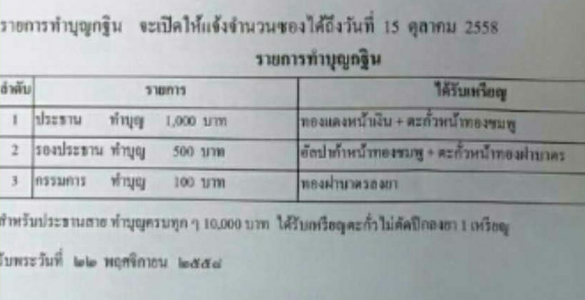 ทั้งนี้ ได้จองซองกฐิน (กรรมการ) ไว้ 50 ซอง จึงขอเชิญชวนผู้ใจบุญร่วมทำบุญกฐินในครั้งนี้ค่ะ โดยผู้ทำบุญกรรมการ จะได้รับเหรียญปาดตาล เนื้อทองฝาบาตรลงยา จำนวน 1 เหรียญ ท่านใดสนใจแจ้งในกระทู้ได้เลยค่ะ