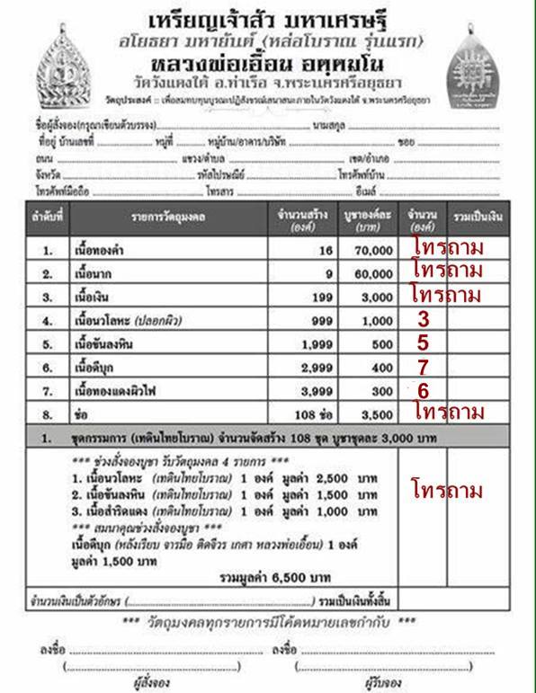 เปิดจองตามรายการราคาวัดค่ะ
