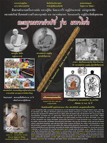 ...ตะกรุดสร้างจำนวน 1000 ดอก บูชาดอกละ 2,500 บาท เป็นตะกรุดจารมือทุกดอก คลุกผงพรายกุมาร ถักเชือก ลงรักปิดทอง 18K รันเลข พร้อมบรรจุอยู่ในกล่องไม้สักอย่างดี