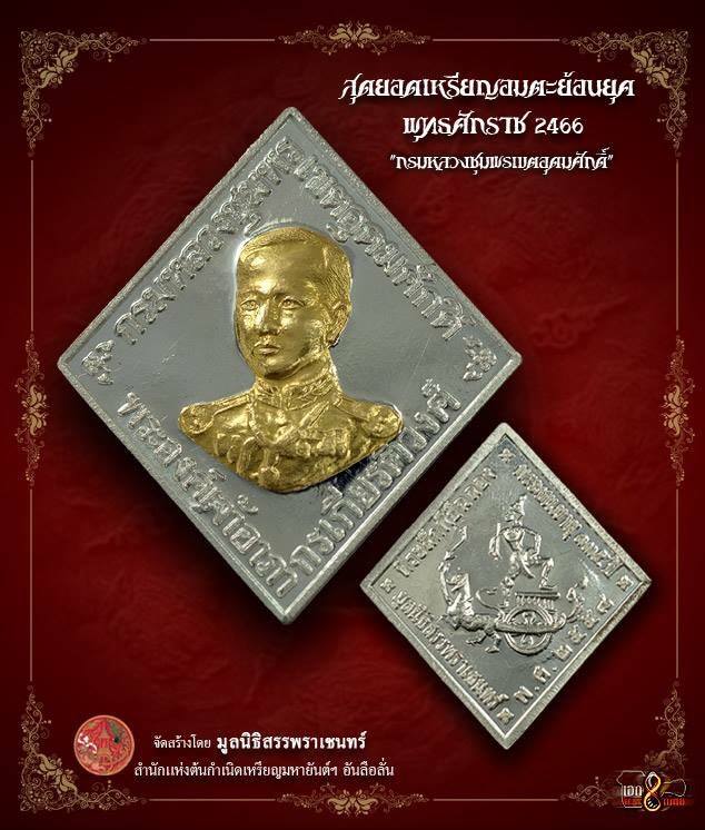 เหรียญย้อนยุค ๒๔๖๖ พิมพ์สี่เหลี่ยมข้าวหลามตัด กรมหลวงชุมพรฯ รุ่นประวัติศาสตร์