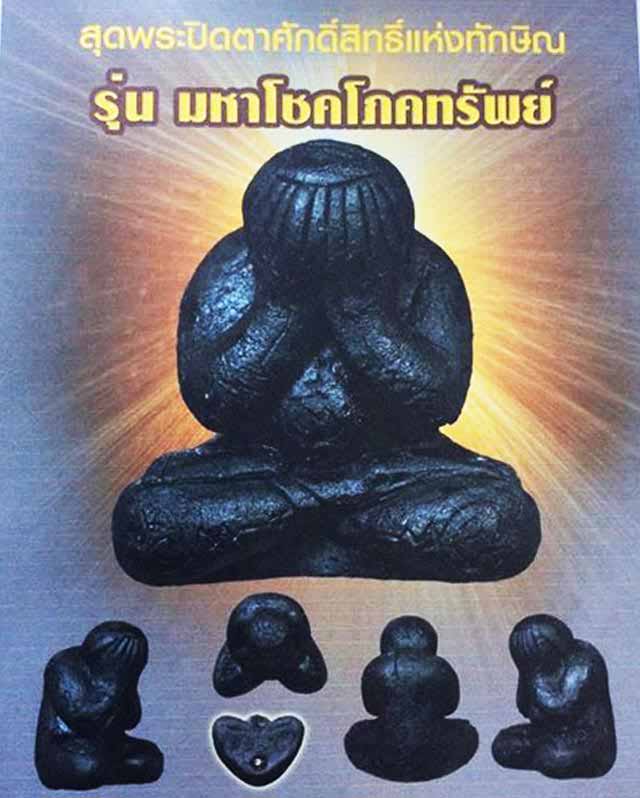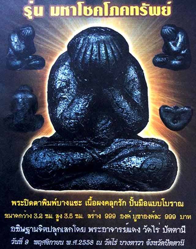 เปิดจอง สุดยอดพระปิดตาศักดิ์สิทธิ์แห่งทักษิณ รุ่น มหาโชคโภคทรัพย์ ""อธิฐานจิตปลุกเสกโดย พระอาจารย์แดง วัดไร่ ปัตตานี "" พระปิดตาพิมพ์บางแซะ เนื้อผงคลุกรัก ปั้มมือแบบโบราณ ขนาดกว้าง 3.2 ซม. สูง 3.5 ซม. สร้าง 999 องค์ บูชาองค์ละ 999 บาท (รับวัตถุมงคล วันที่ 15 พฤศจิกายน 58)