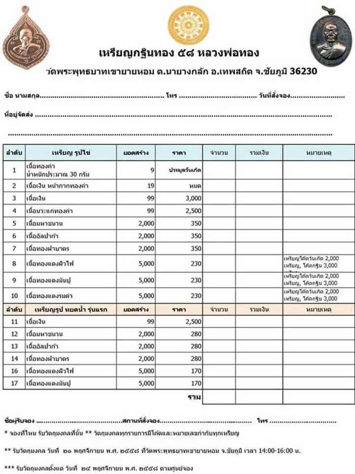 **เชิญร่วมทำบุญ กฐิน หลวงพ่อทอง สุทฺธสีโล วัดพระพุทธบาทเขายายหอม**(บางเนื้อรับพระได้เลยค่ะ)